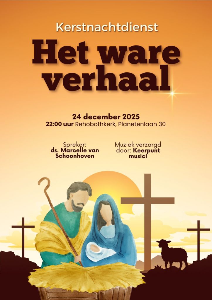 Ds. Marcella van Schoonhoven vertelt dit jaar over het thema “Kerst, het ware verhaal”. De muziek wordt verzorgd door jonge musici uit verschillende kerken en gemeenten, die met veel enthousiasme meewerken aan de dienst.